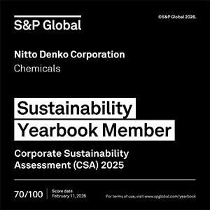 S&P Global evaluates the sustainability of global companies from economic, environmental, and social perspectives through their unique CSA (Corporate Sustainability Assessment), and every year, publishes “The Sustainability Yearbook” which lists the top-rated 15% of the companies in each industry. The Nitto Group is selected as a Sustainability Yearbook Member, while S&P Global evaluates approximately 9,200 companies worldwide and lists only 848 high-performing companies in “The Sustainability Yearbook 2026”.