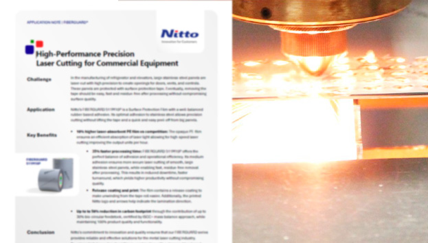 Boost your efficiency and performance with Nitto's advanced protective tape for stainless steel. Our tape's strong adhesion and high laser absorbance dramatically reduces bubbling and blow-ups. Save time, minimize rework, and achieve a perfect finish with easy, clean removal.