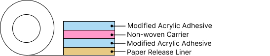 Nitto 5015E is a high-performance double-coated tape featuring a non-woven tissue carrier, which is coated on both sides with a pressure-sensitive acrylic adhesive. It is designed for a wide range of mounting and bonding applications.