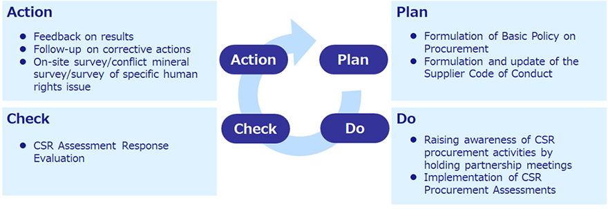 Our CSR procurement process is carried out through the PDCA cycle as shown in the diagram.