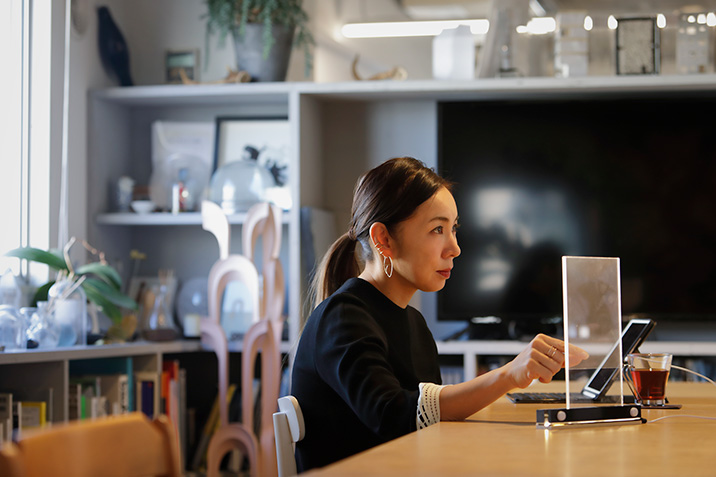 Nagayama with a RAYCREA sample. She is drawn to the potential of the film and is highly knowledgeable about the material.